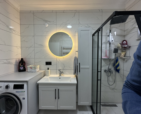Yapılanlar3D Tasarımlar Tüm MekanlarınMutfakTezgahKapılarLaminantPeteklerVestiyerDış kapı önü sundurmaBoya ve stropiyerler